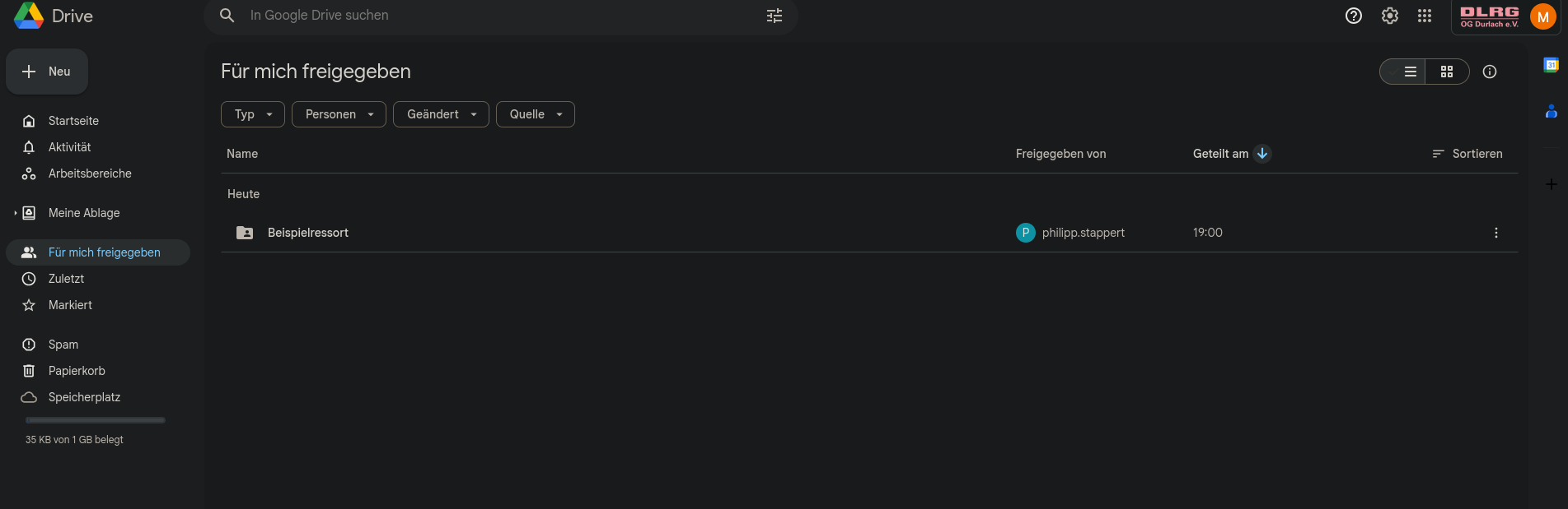Um darauf zugreifen zu können, muss einmalig ein Zugang über Philipp (it@durlach.dlrg.de - bitte wirklich per Mail, sonst vergesse ich es!) beantragt werden. Eine Nutzung mit einem privaten Google-Account ist nicht möglich.